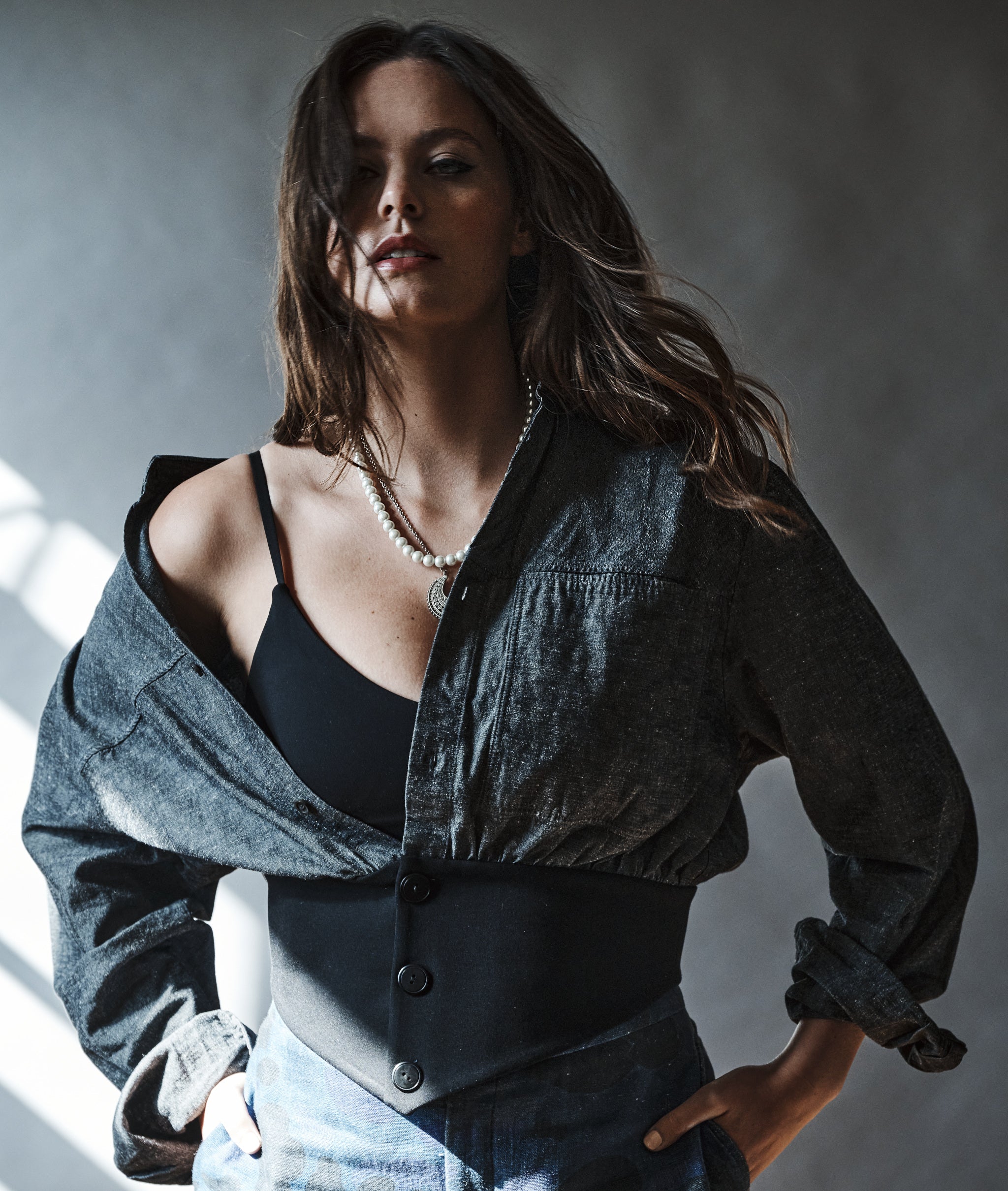 Waistband Shirt in Grey Denim