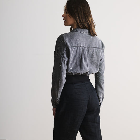 Waistband Shirt in Grey Denim
